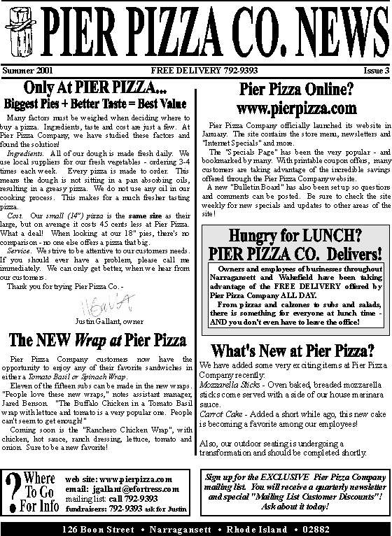 Newsletter for Summer 2001